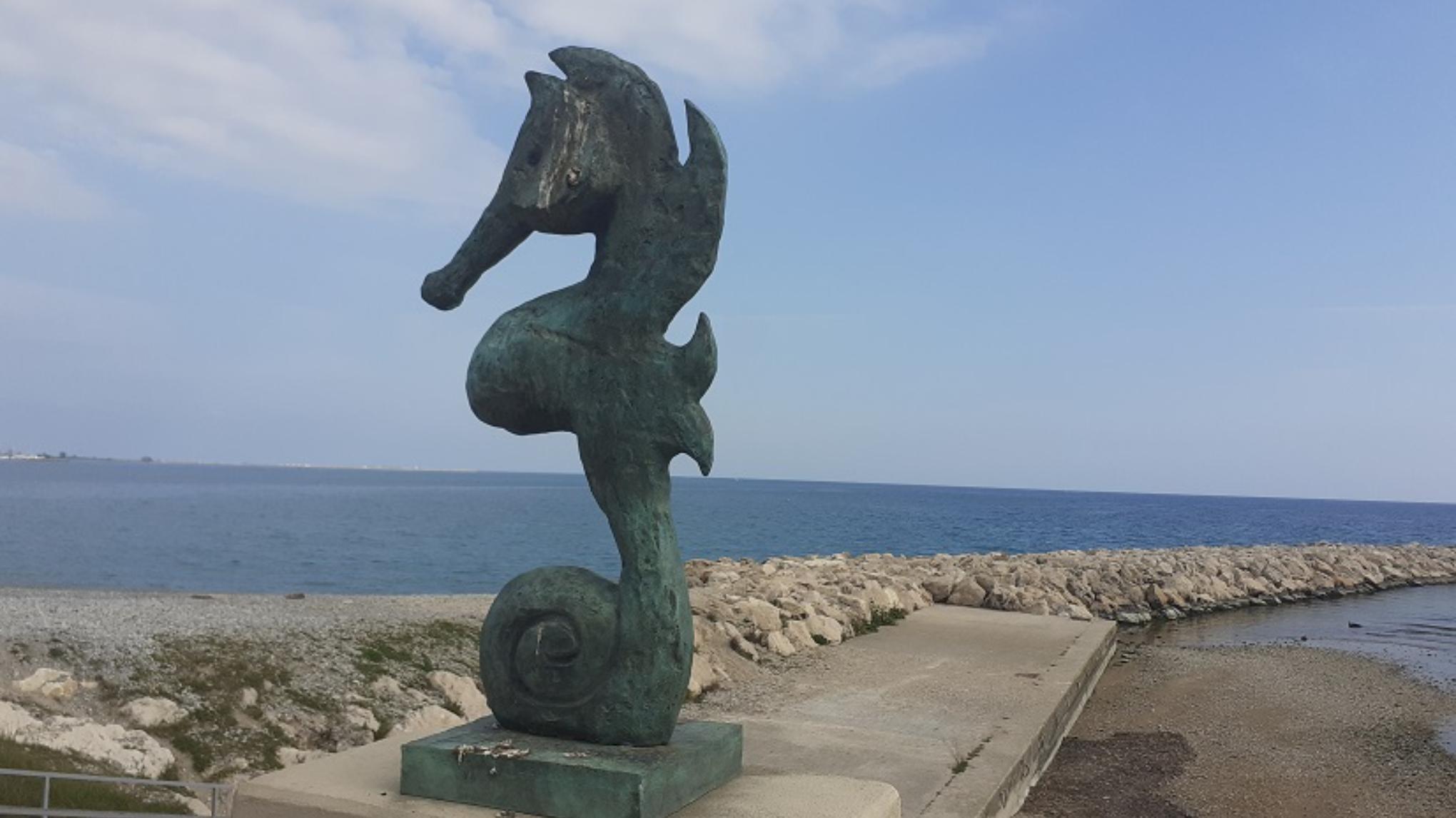 A gauche de la statue Hippocampe, descendre les escaliers: au bout de la plateforme