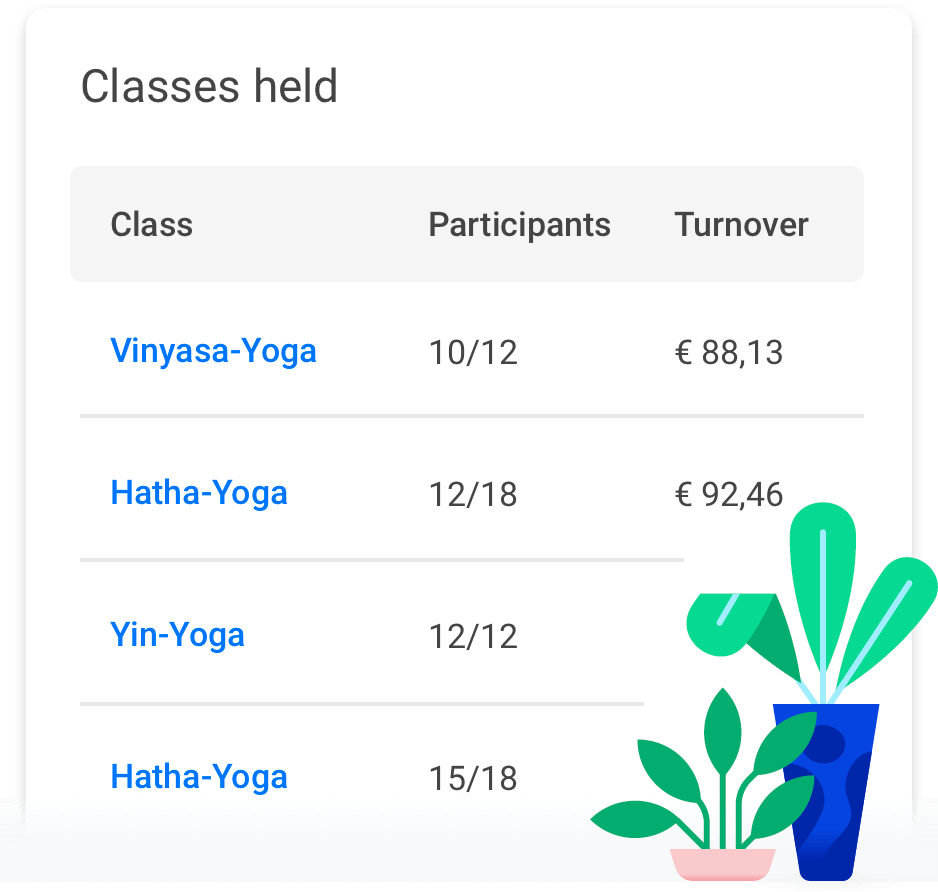 Exportiere Yoga-, Lehrer-, Bestell- und Zahlungsdaten für deine eigenen Unterlagen. Du weißt, was gut läuft und wo noch Verbesserungsbedarf besteht.