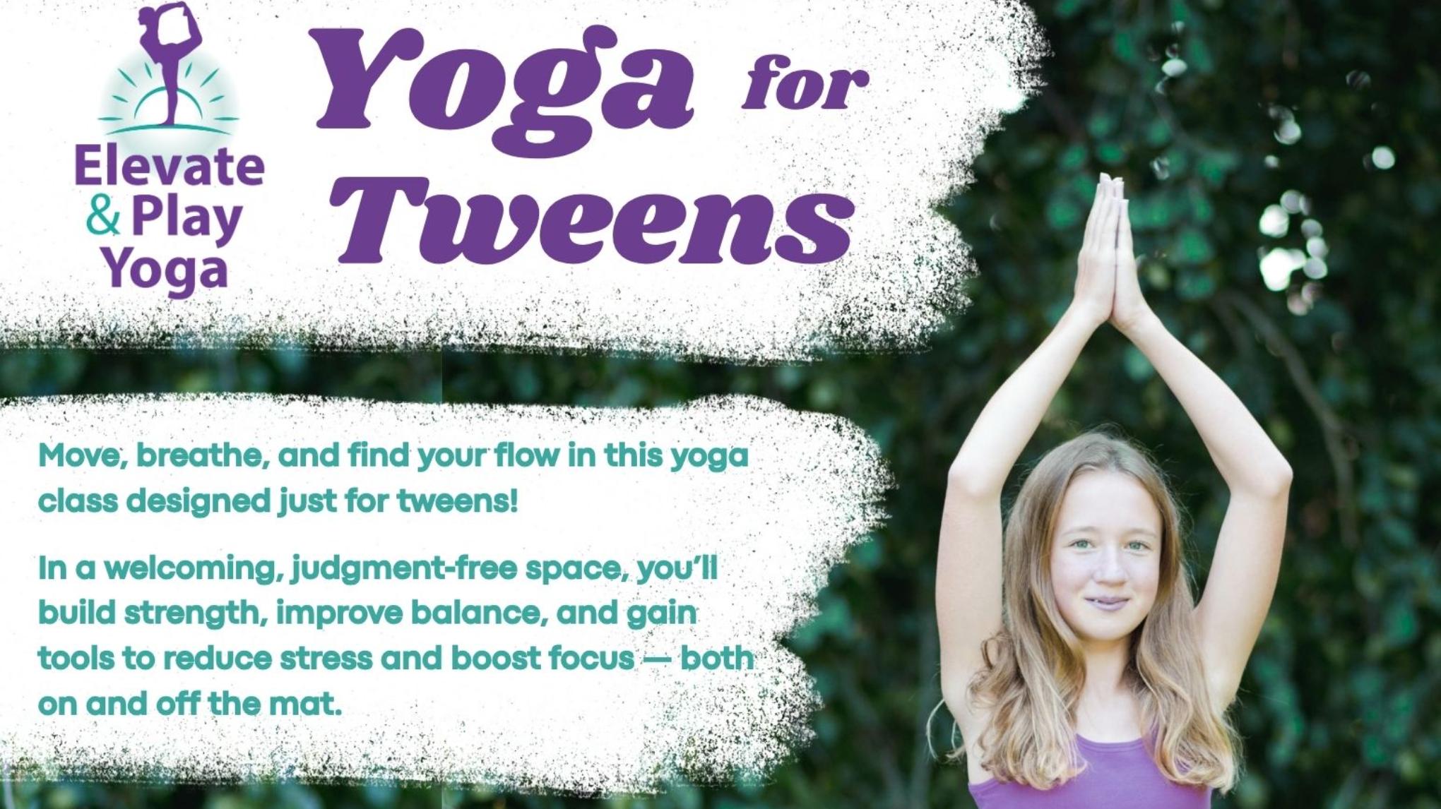 Move, breathe, and find your flow in this yoga class designed just for tweens! In a welcoming, judgment‑free space, you’ll build strength, improve balance, and gain tools to reduce stress and boost focus — both on and off the mat. (Ages 9-12)