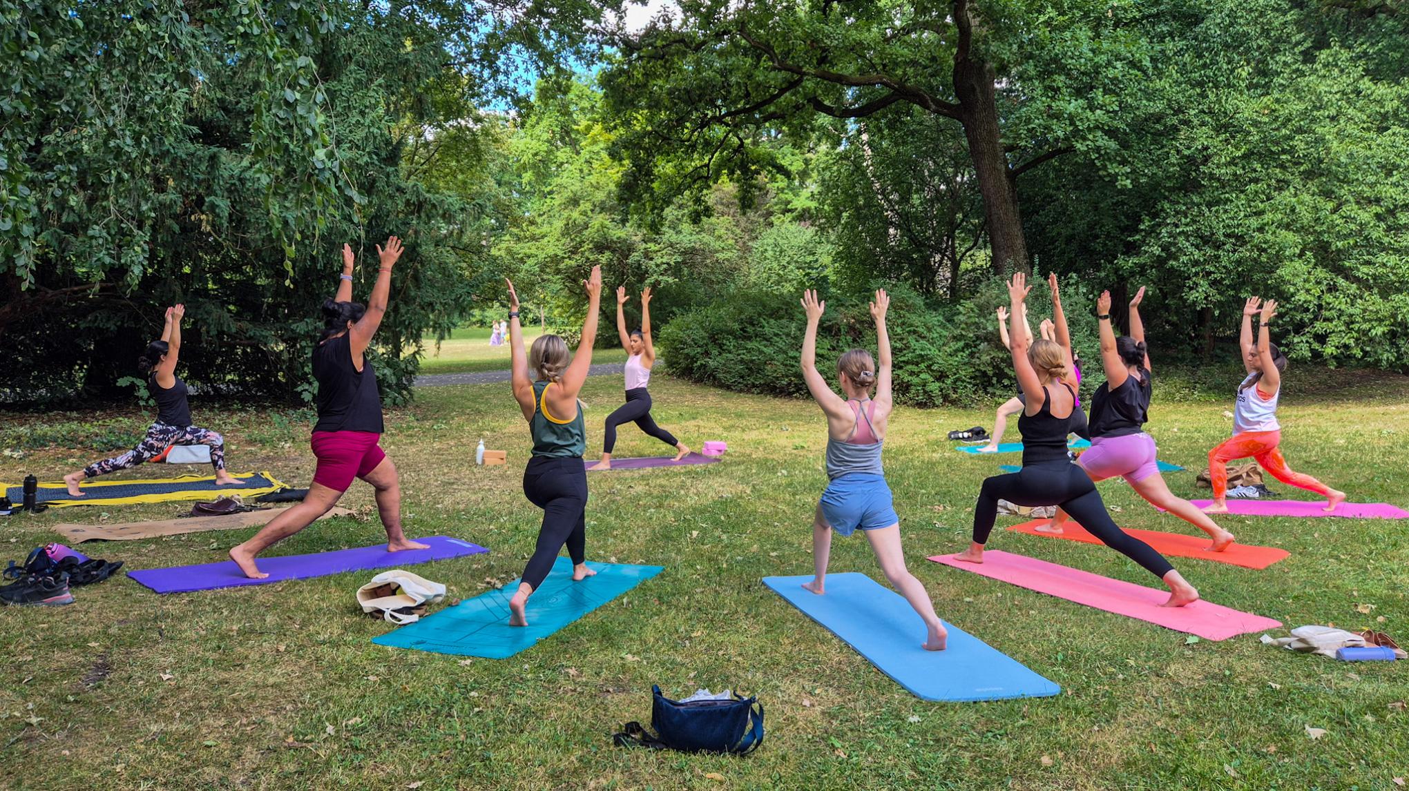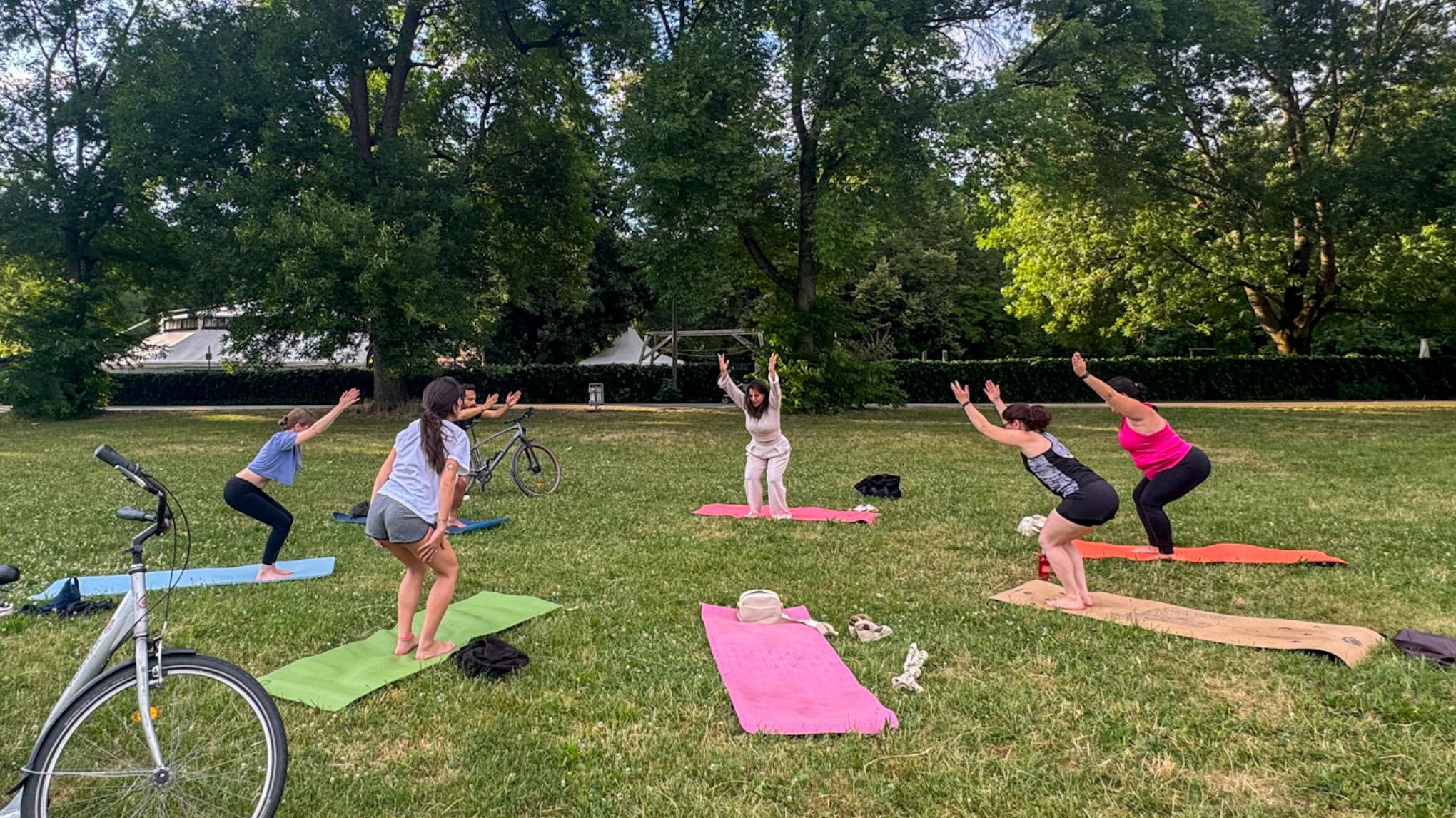 Start your weekend with intention and presence at our Saturday morning yoga class from 10am–11am in the peaceful greenery of Nuremberg Stadtpark.