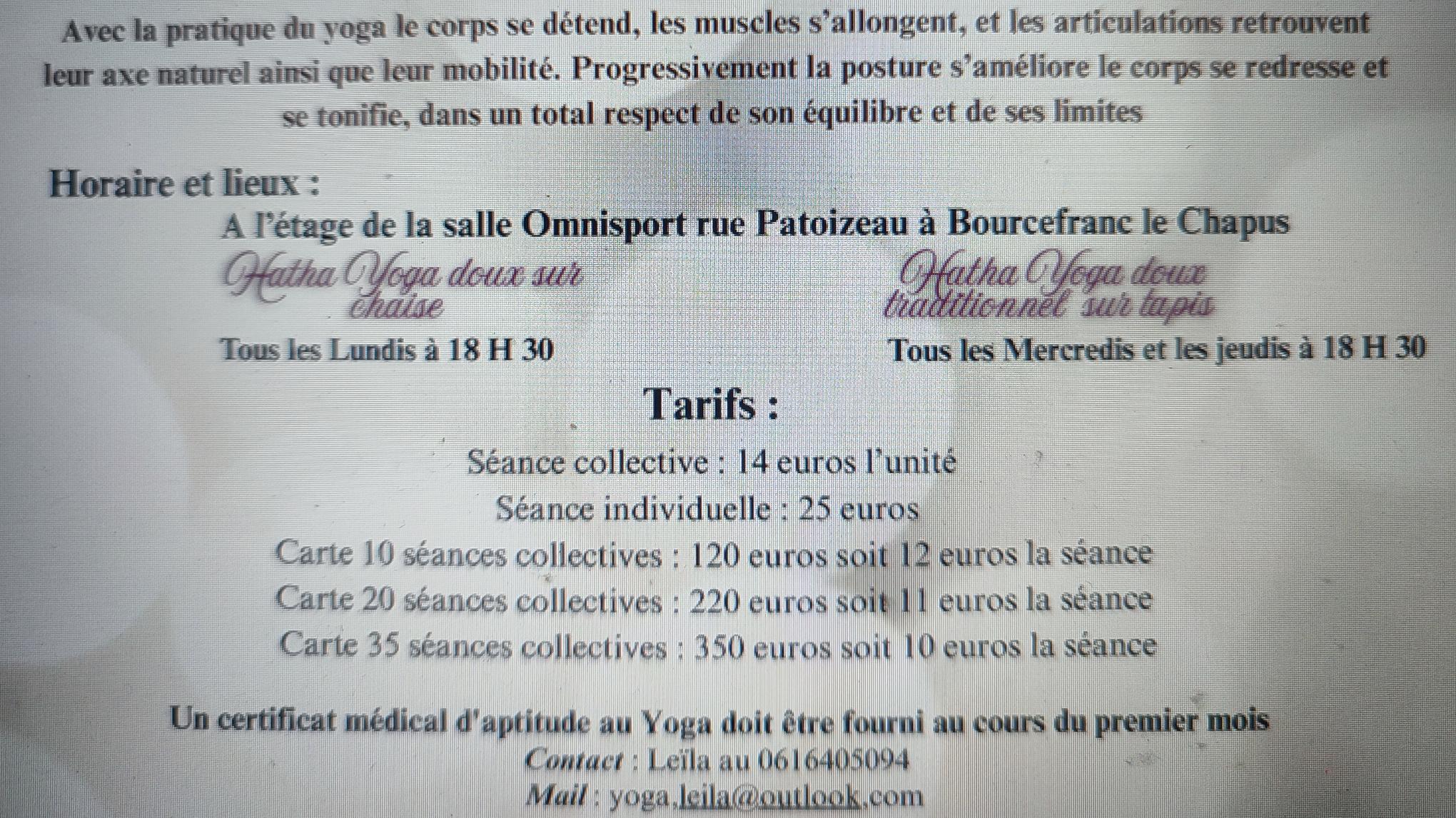 Séance de Hatha Yoga traditionnel doux sur tapis. Tous les Mercredis à 18 h 30