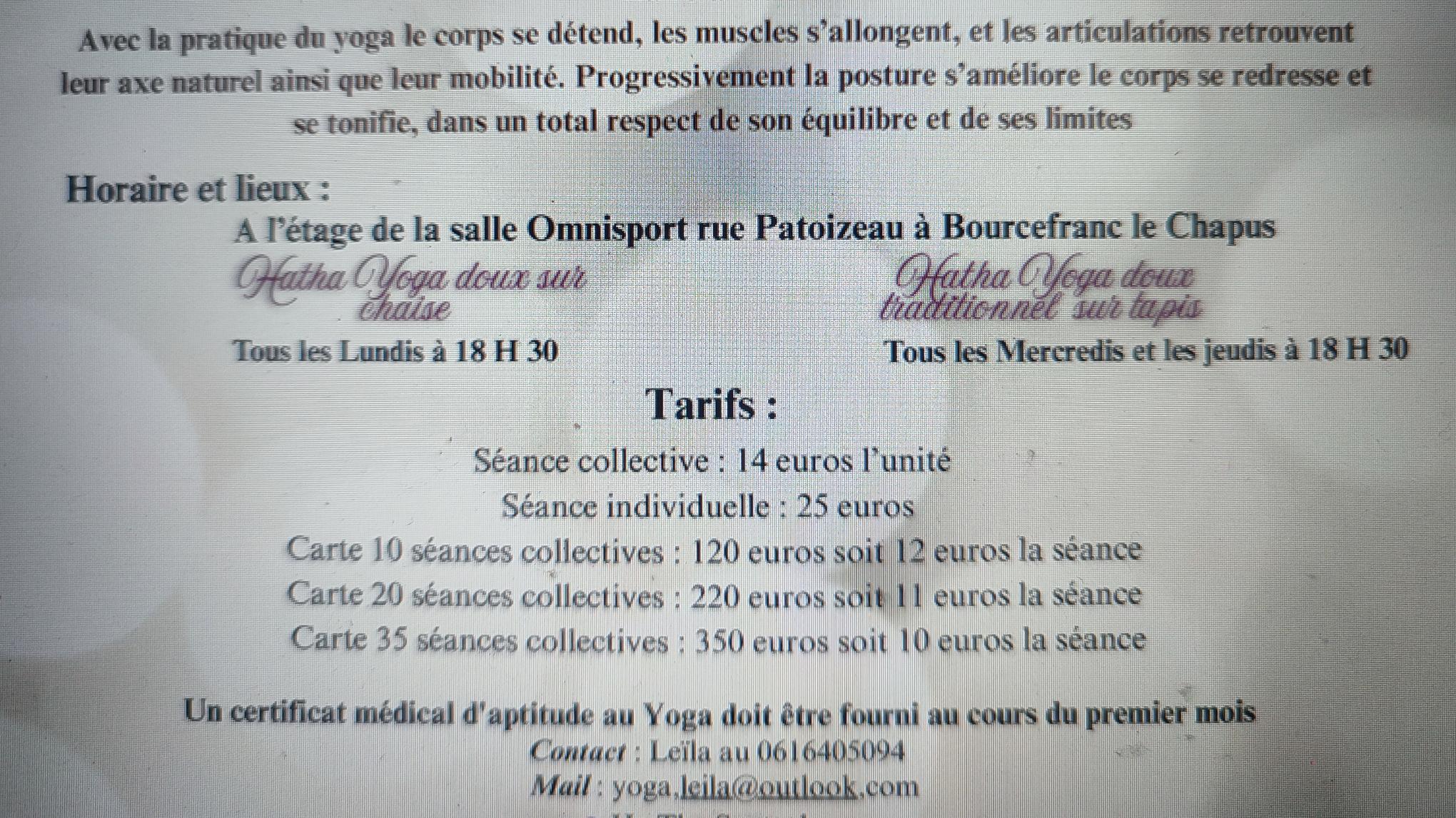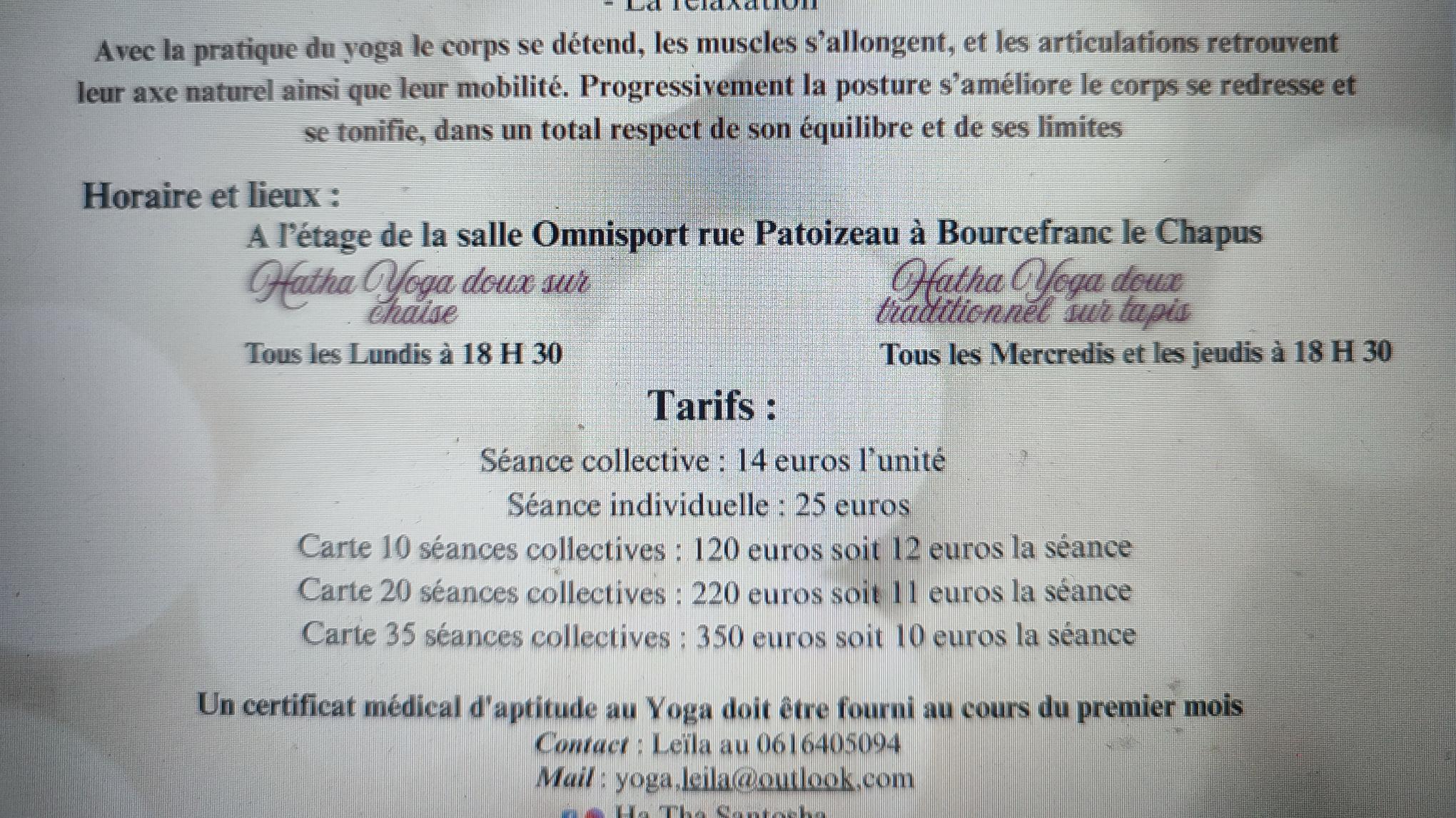 Attention à partir de cette semaine là séance du jeudi reste à 19 h! Merci de votre compréhension. Séance de Hatha Yoga traditionnel doux sur tapis.