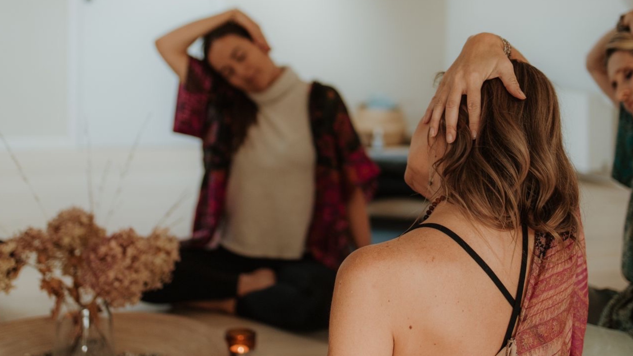 De sessie eindigt met een lange Savasana van een uur, waarin je wordt gewiegd met doeken, subtiele aanrakingen en holistische pulsen.