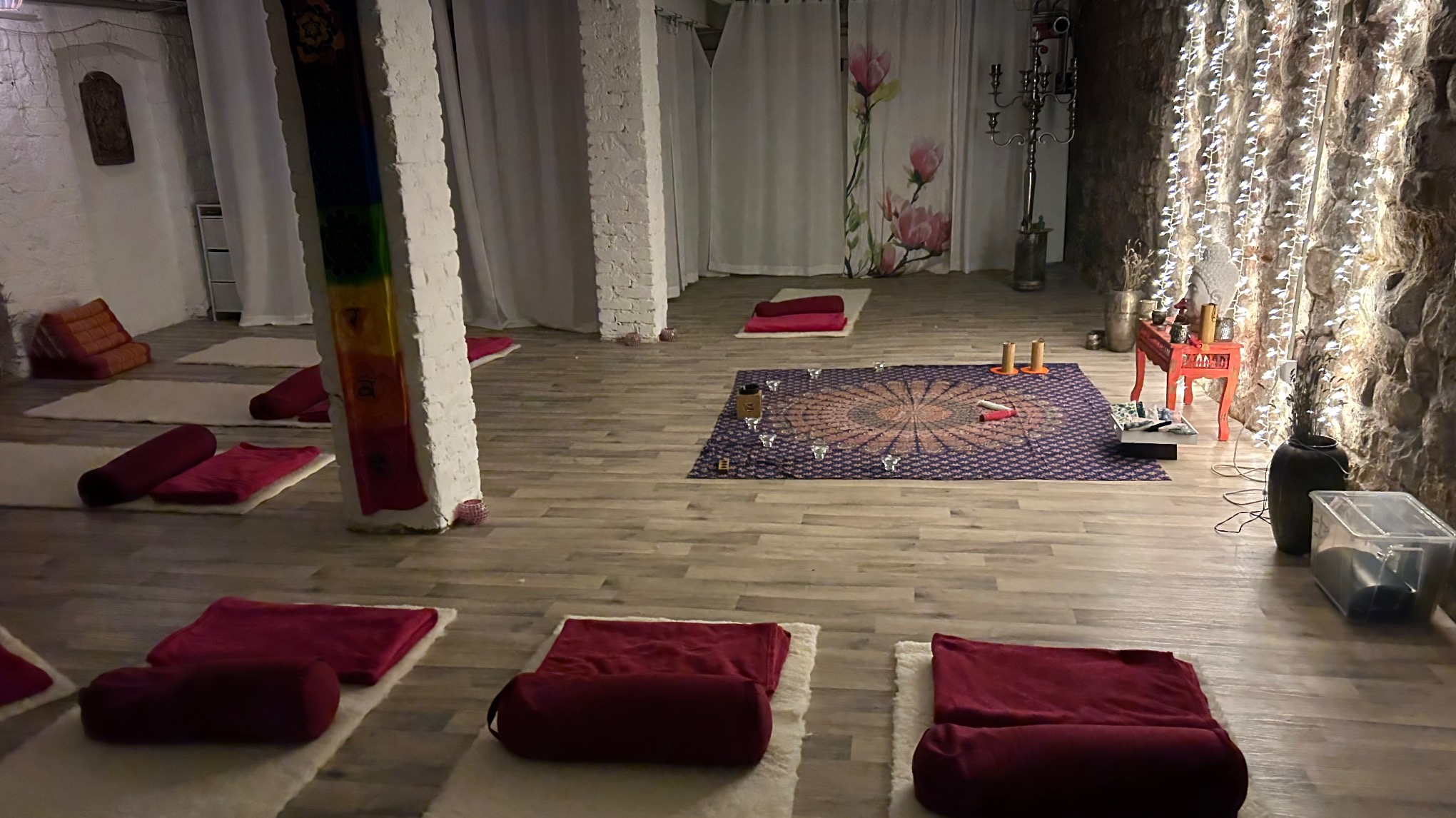 • Beruhigende Klänge und Vibrationen von Kristallklangschalen und Koshis.