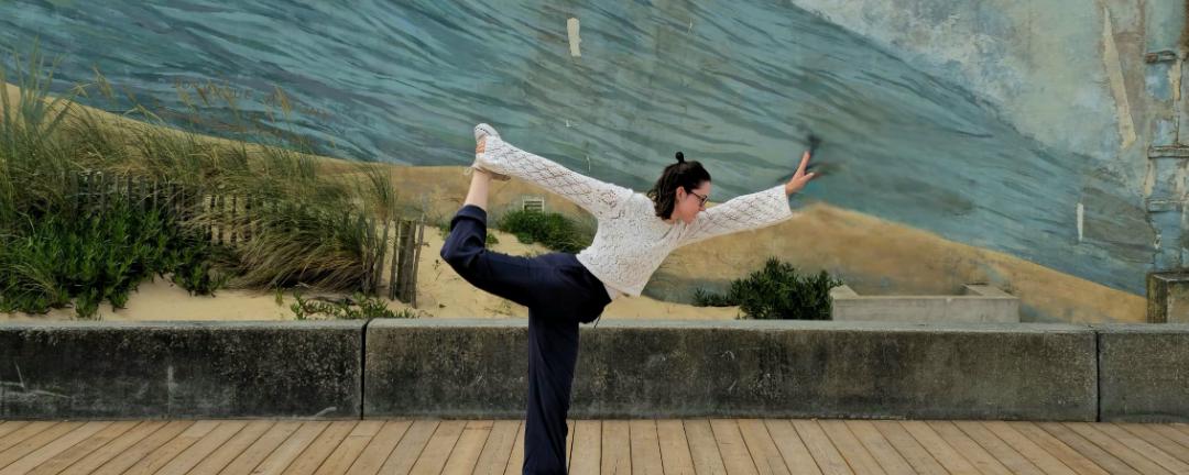 Je propose du vinyasa : un enchaînement de postures pour garder le mouvement mais plus conscient, plus présent, ancré sur la respiration et l'écoute de soi.