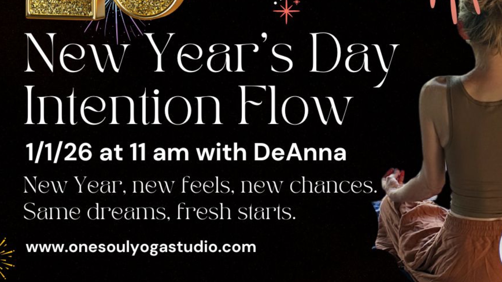 Join DeAnna on Thursday, January 1 at 11 am for our annual New Year’s Day Intention Flow. Begin 2026 with clarity, gratitude, and intention. Join us for New Year’s Day Intentional Flow, to help you let go of 2025 with a heart full of gratitude and step into the new year with openness and endless possibilities.