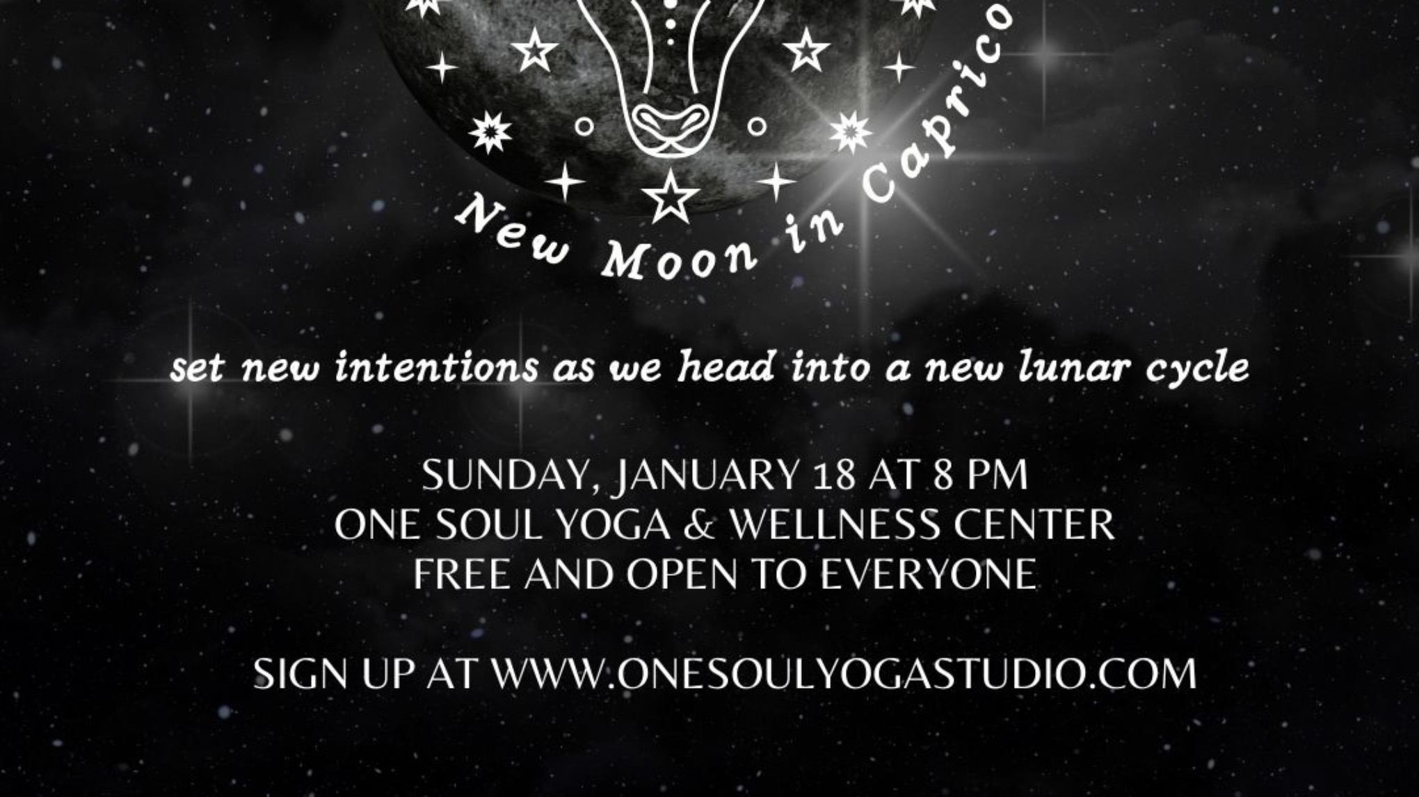 Join at One Soul Yoga on 1/18 at 8 pm for a gathering to honor the energy of the new lunar cycle, a powerful New Moon in Capricorn. This is a time for grounding, clarity, intention-setting, and laying the foundation for what you wish to build in the months ahead.