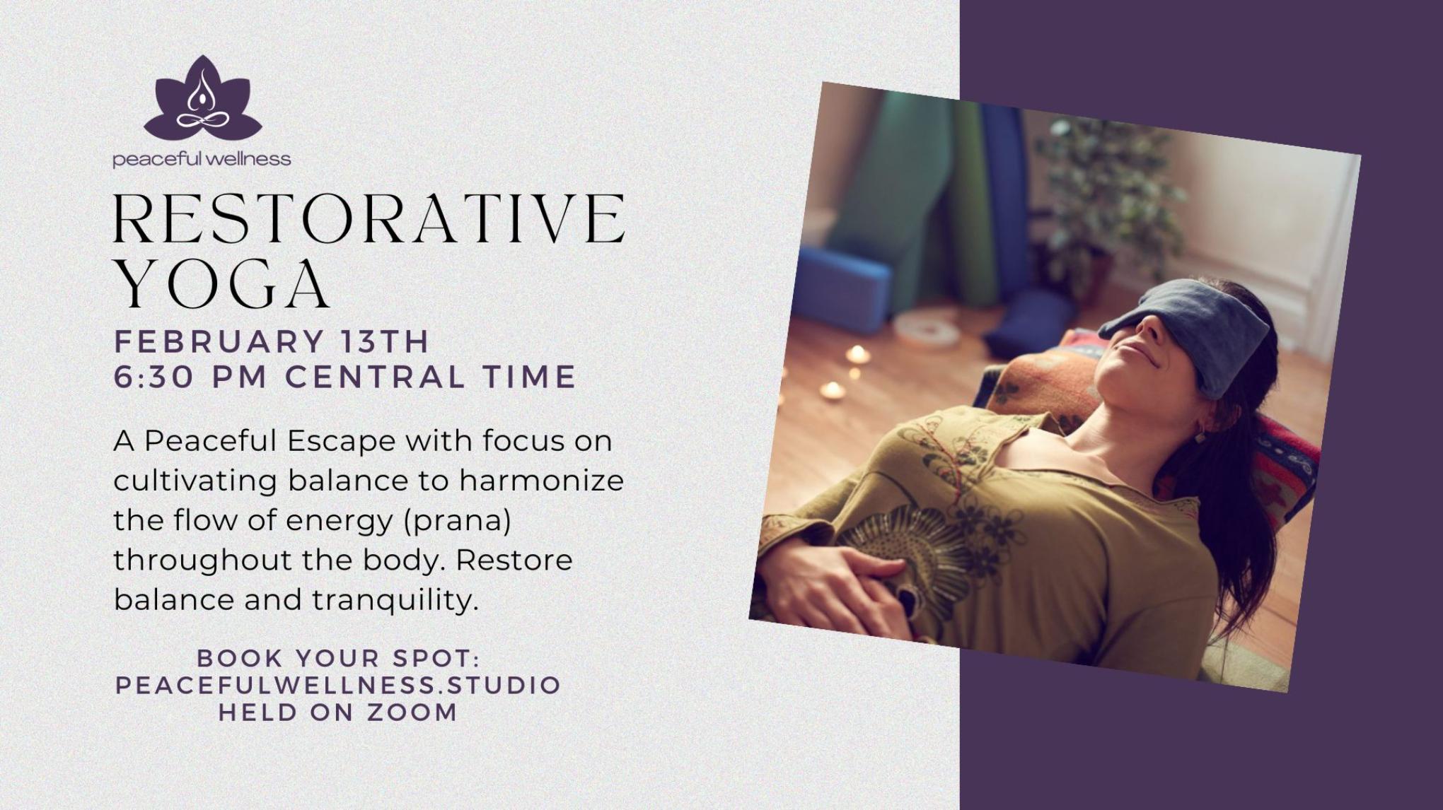 ONLINE Restorative Yoga 7:30 pm ET/4:30 PT Online