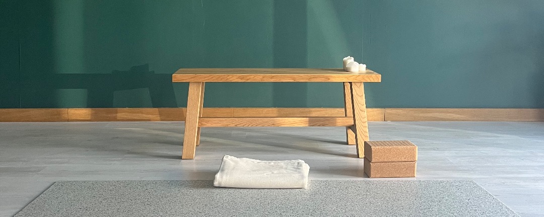 The space is fully equipped (mats, bolsters, blankets, blocks, straps) and provides a calm and bright environment.