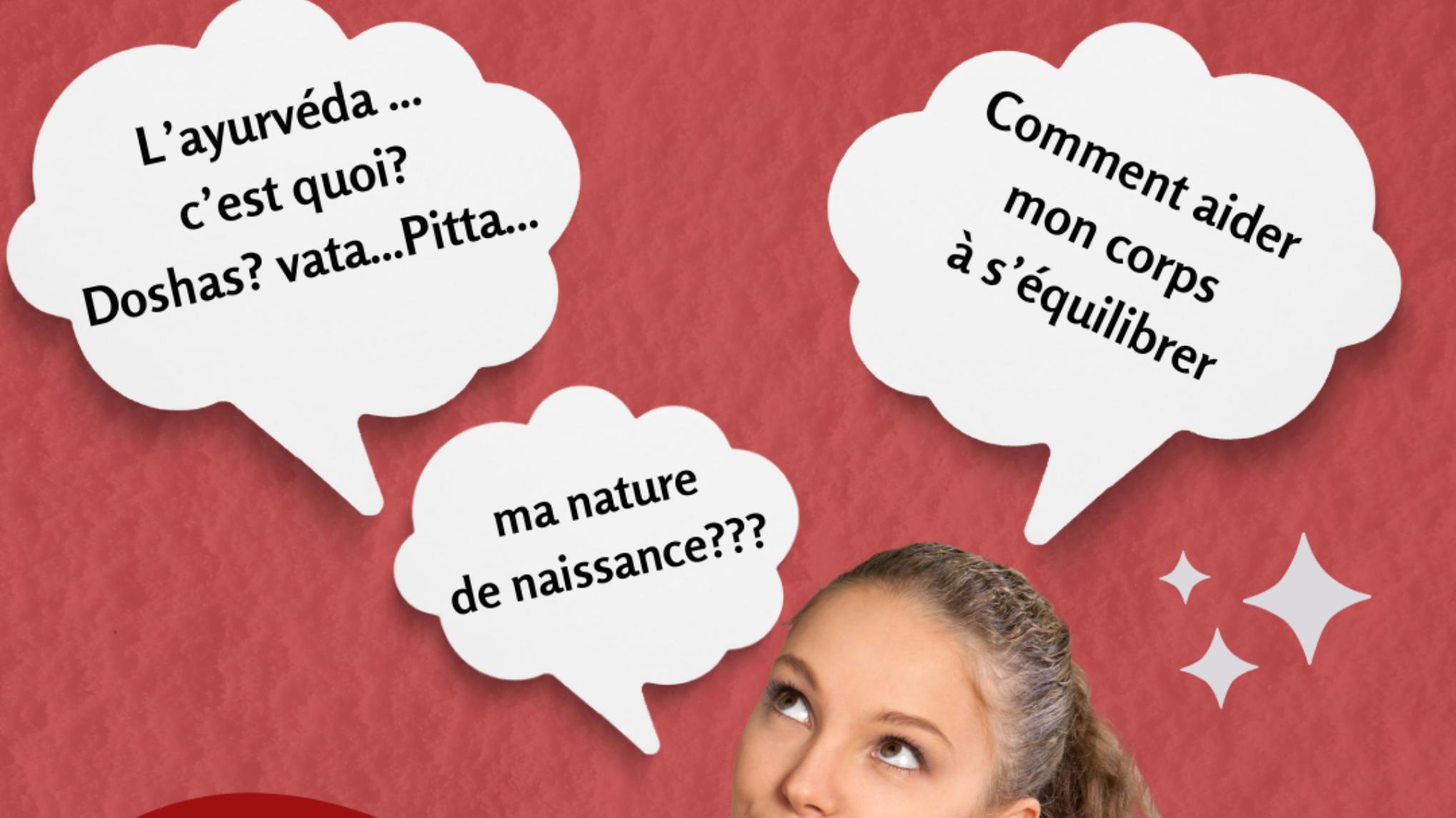 venez la découvrir en un cours de 2h, vous apprendrez les bases, ce que sont les Doshas(vata, pitta et kapha), à connaître et comprendre votre nature de naissance et à identifié votre déséquilibre.
