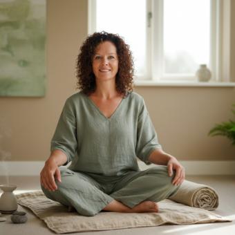 Zachte yoga, breathwork, aandacht, zelfliefde en als je wilt de ondersteuning van cacao.