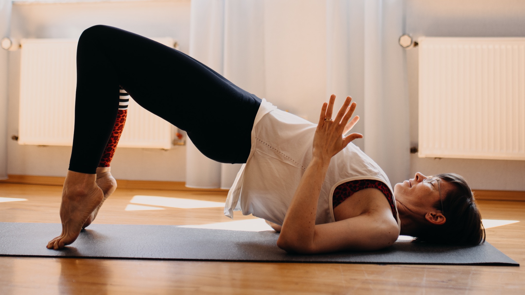 Ich verbinde traditionelles Yoga mit modernen Einflüssen und Lebendigkeit. So entsteht ein Yogastil voller Präsenz und Lebensfreude, der sich durch eine gesunde Ausrichtung der Knochen und Gelenke auszeichnet.