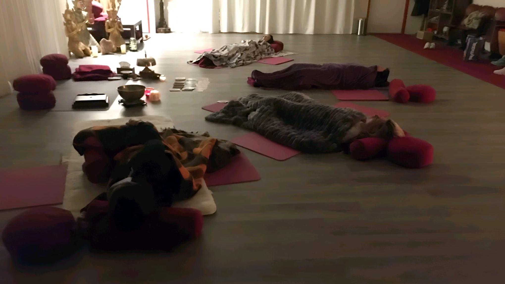 Yoga Nidra is een ontspanningsmethode die zorgt voor een diepe rust en herstel van lichaam en geest. Je ligt stil op de mat, en je volgt de stem van de docent die je door verschillende fases in je zijn begeleidt.