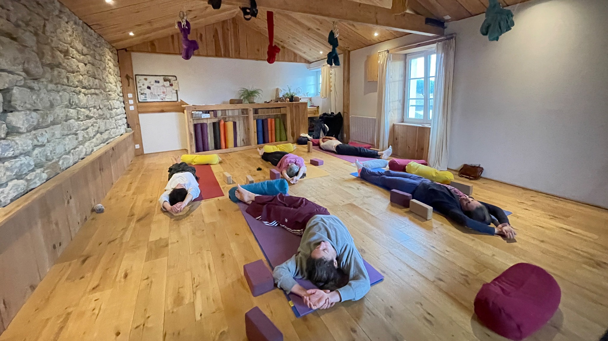 - Votre tapis de yoga épais (fourni si besoin, personnel recommandé)