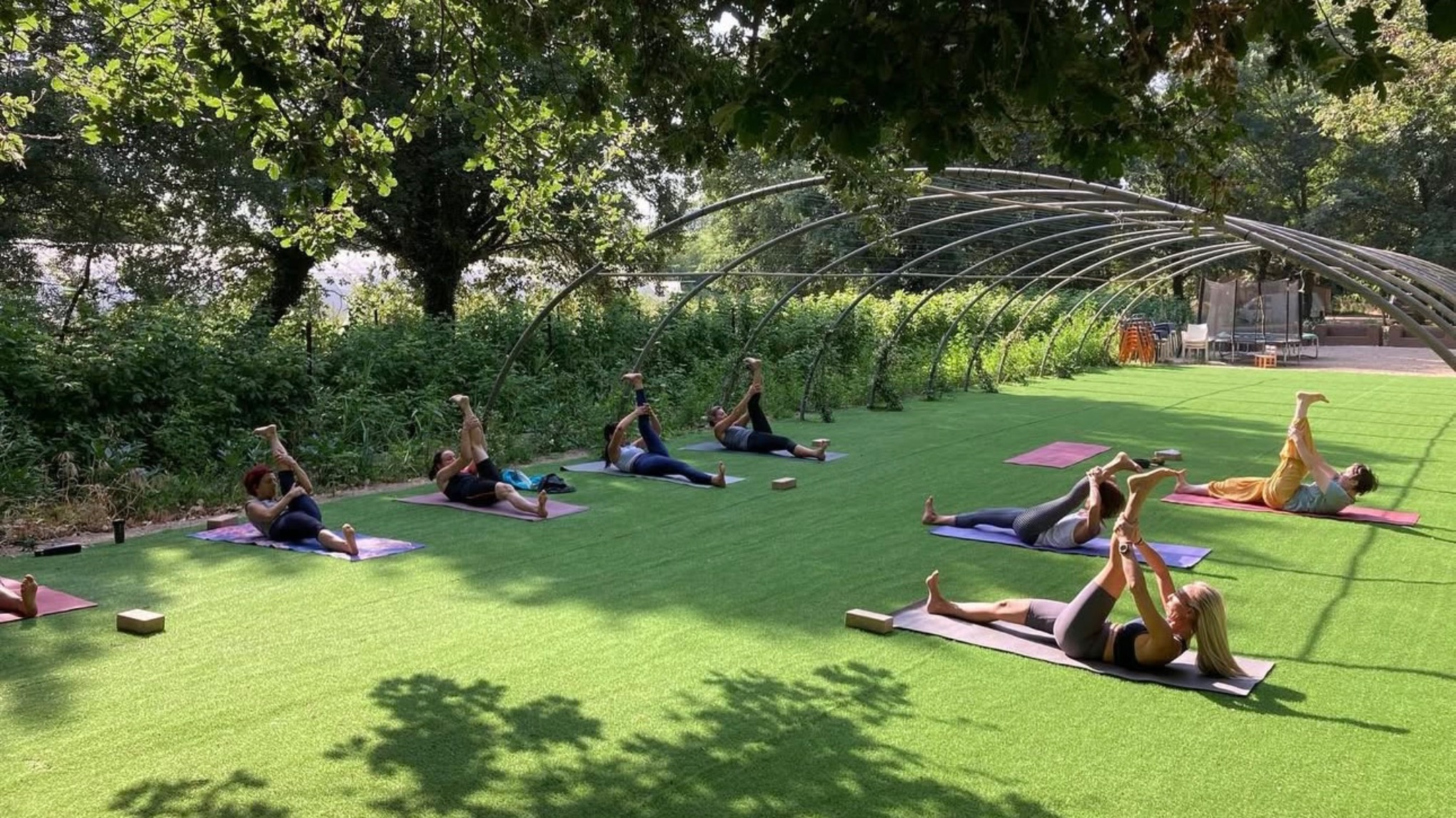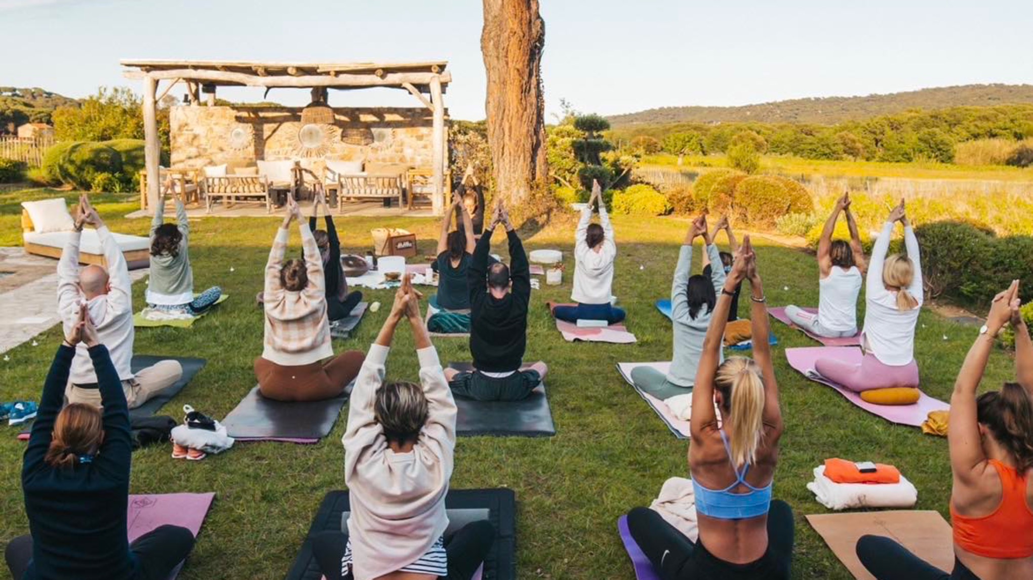 - Son tapis de yoga (si vous préférez le votre, sinon des tapis sont à disposition au jardin)